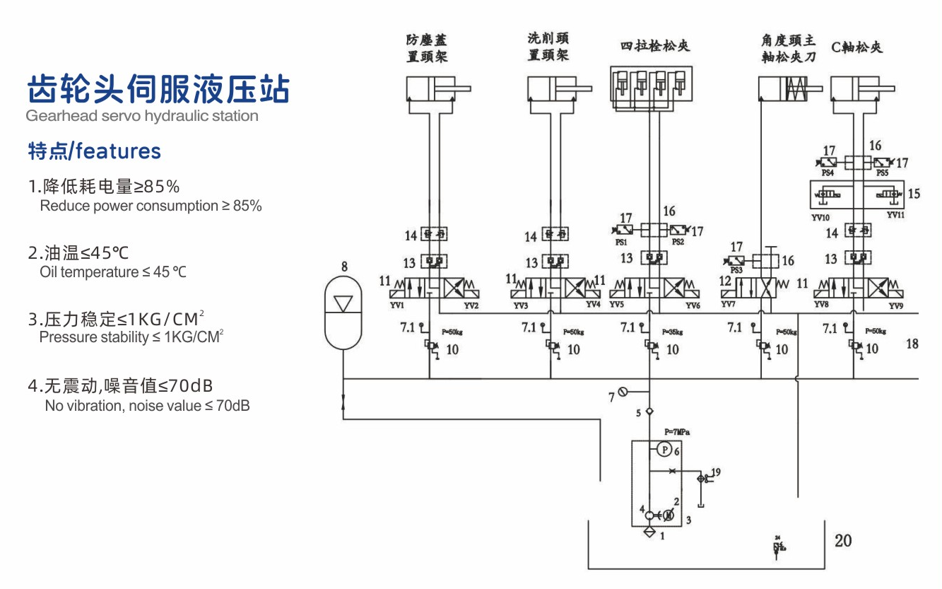 五.油温稳定,减少故障伺服液压站无需调压阀和溢流阀,温度可控制在45度以下,大部分工况无须装冷却系统。